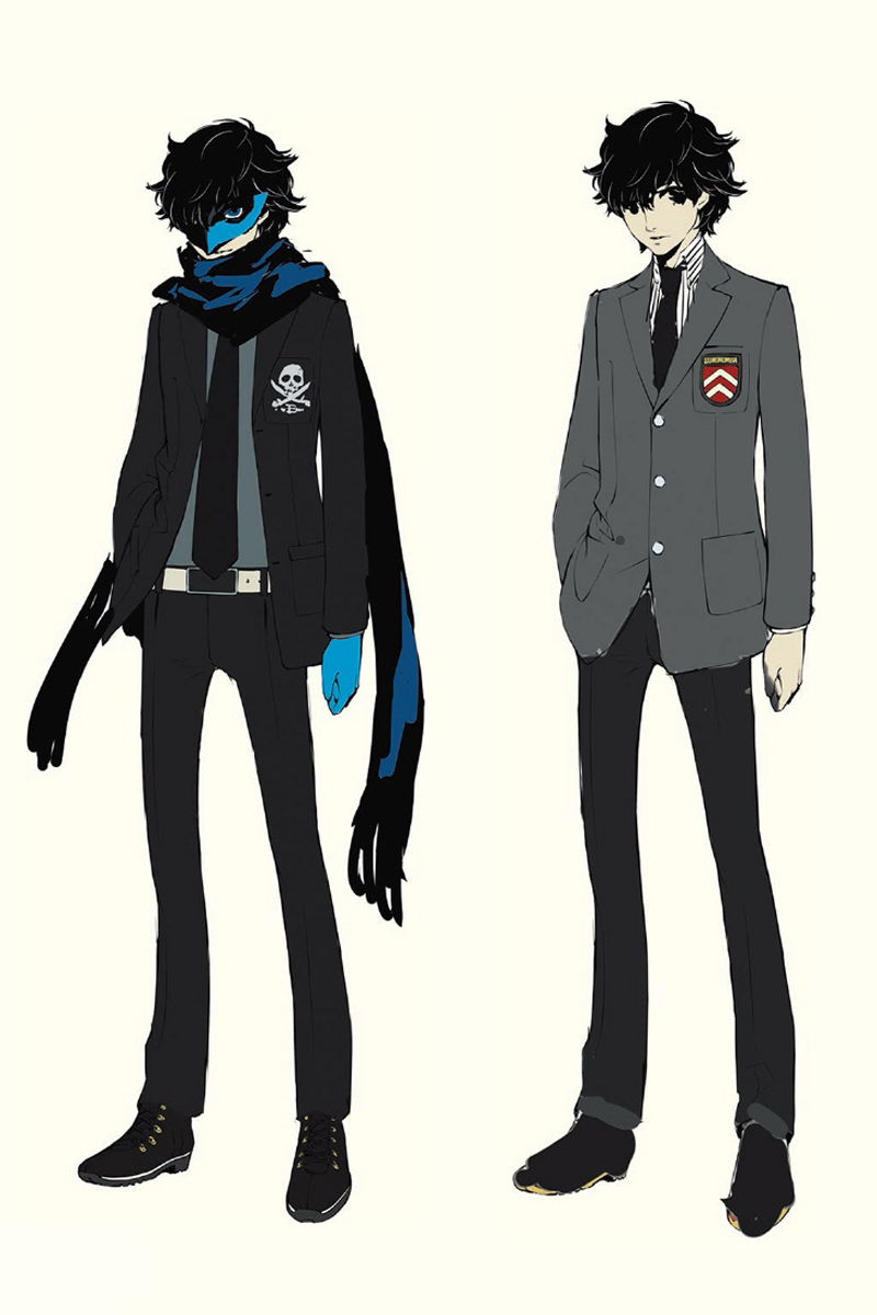Так как дизайн костюма Джокера мог сильно повлиять на первое впечатление от Persona 5 и то, как игру примут, мы подошли к созданию формы особо тщательно, перепробовав множество разных вариантов. Главные герои игр серии Persona — подростки, однако они не выглядят таковыми, когда пользуются силой своих персон. Сначала я планировал, что при исследовании мира подсознания персонажи будут носить школьную форму, как в предыдущих играх. Но по форме можно было бы элементарно вычислить преступников, поэтому она плохо подходит. В то же время, если костюмы были основаны на повседневной одежде, персонажи слишком напоминают обычных уголовников. В итоге я пришёл к мысли, что наших Воров от обычных преступников отличает ореол романтизма, поэтому я решил придать этому романтизму «физическое обличие».