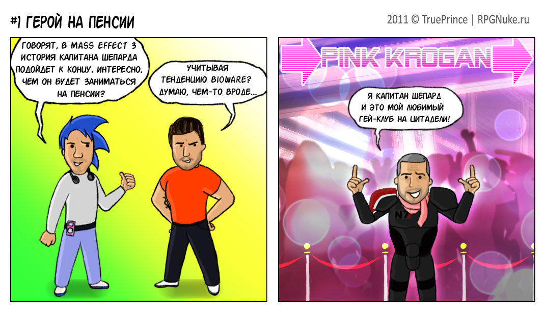Отныне на нашем портале вы не только можете прочитать свежие новости мира RPG, но и ознакомиться с комиксами нашего авторства. Представляем вашему вниманию первый выпуск, который носит название «Герой на пенсии» и повествует о судьбе Шепарда, главного героя серии Mass Effect. Графической частью занимался камрад TruePrince, сценарий подготовил Del-Vey.
