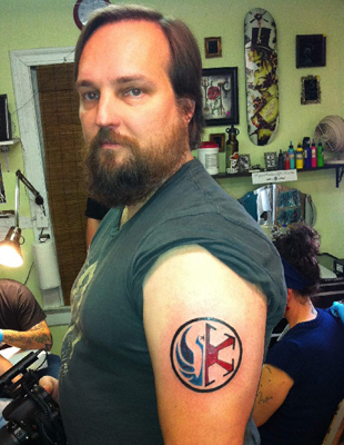 Неугомонный со-основатель BioWare, до сих пор не определившийся с внешним видом растительности на своем лице, решил отпраздновать запуск MMORPG Star Wars The Old Republic, набив себе татуировку на левом плече. Грег Зещук не замедлил похвалиться приобретением, выложив фотографию в своем Twitter.