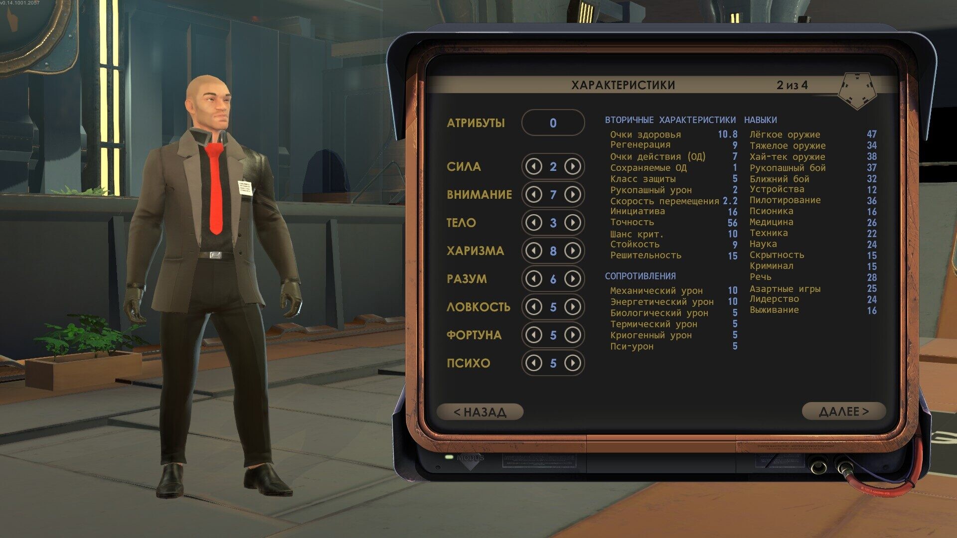 Мы вступаем в игру в качестве одного из сотрудников C.R.O.N.U.S., и своего героя здесь, по заветам классики, мы создаём самостоятельно. Ролевая система выполнена в стиле знакомой всем по Fallout S.P.E.C.I.A.L, а это значит, что в Encased отсутствуют классы.