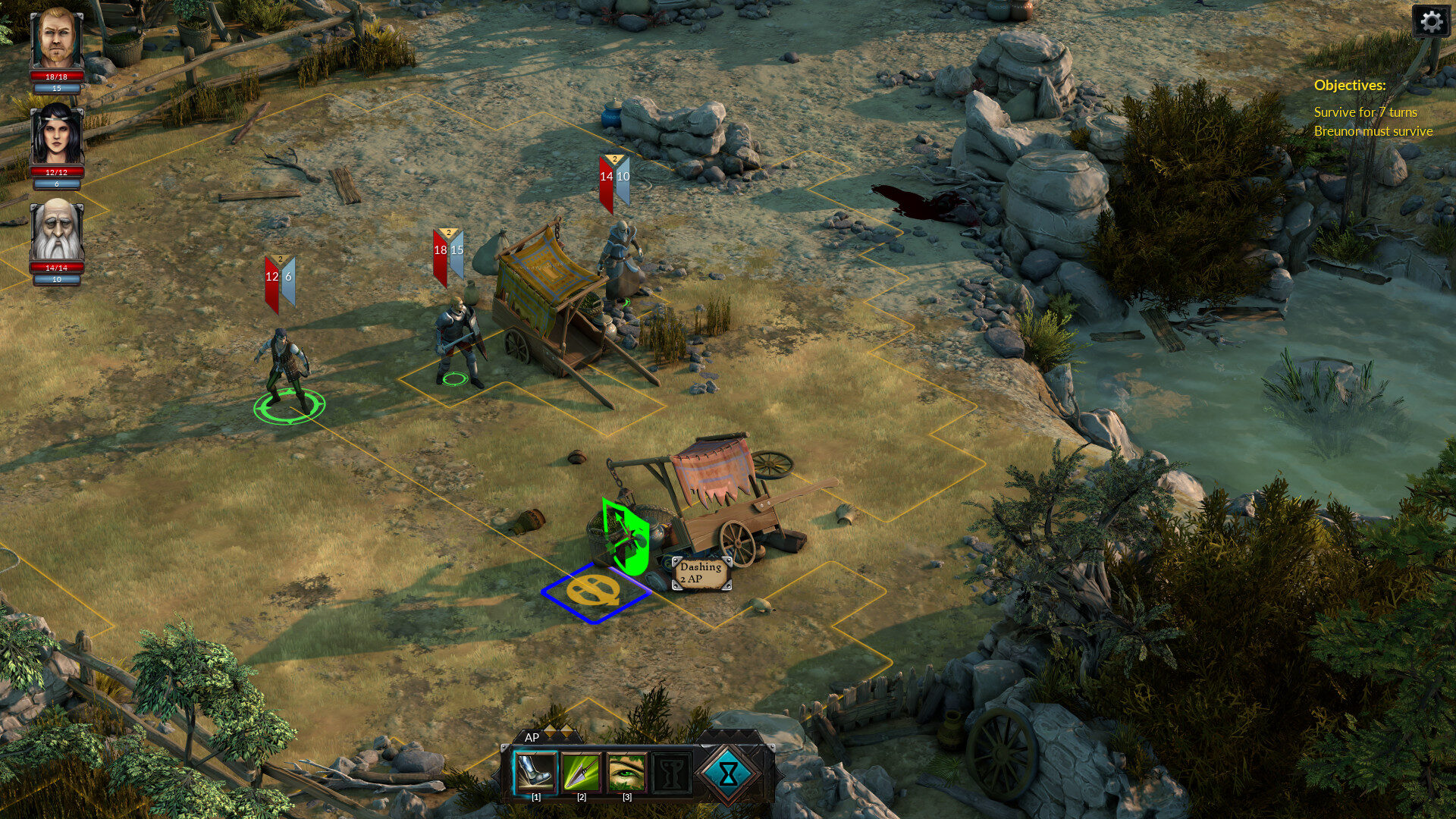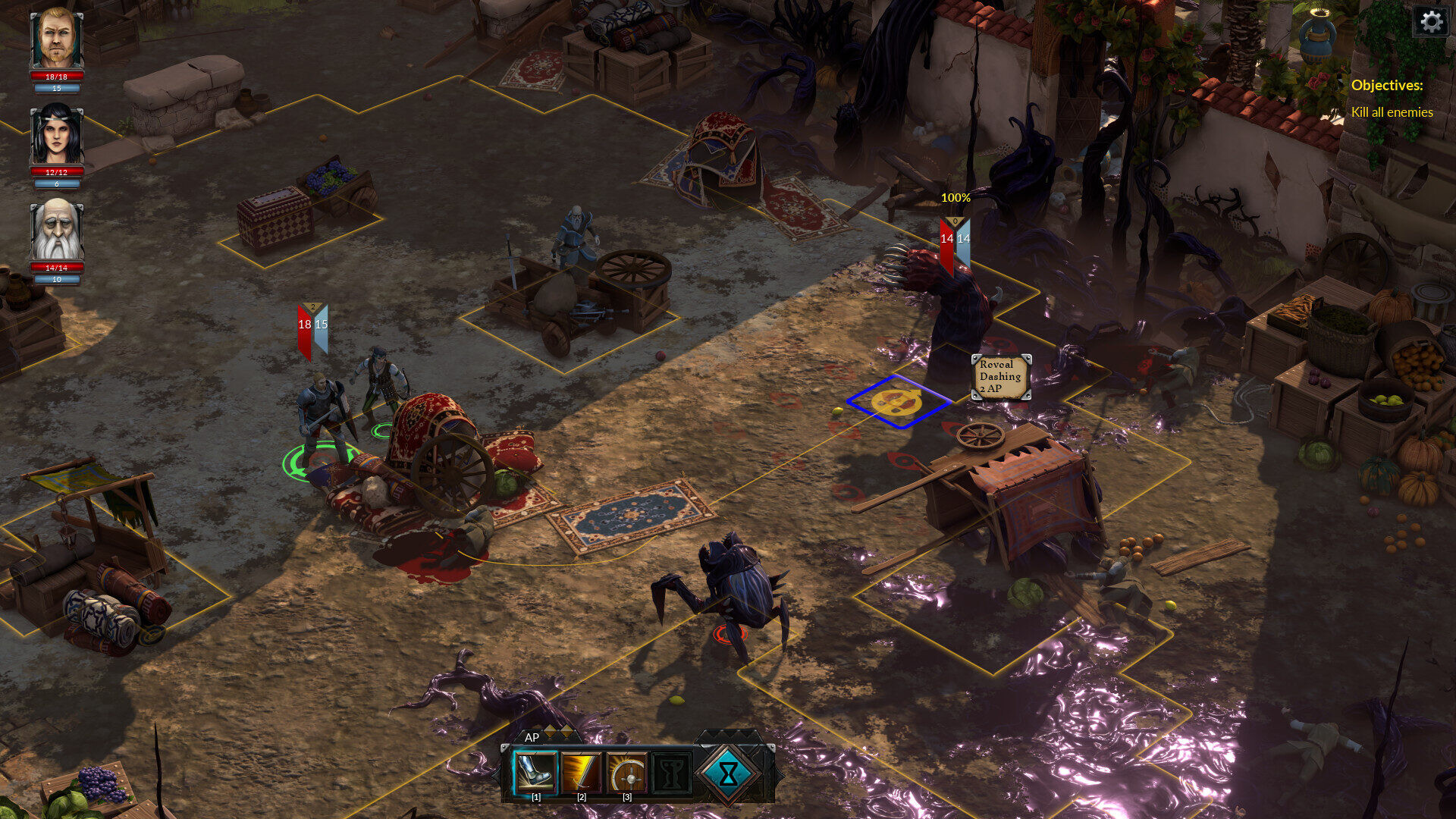 - Тактические пошаговые сражения. Используйте высоту для получения преимущества, укрывайтесь за препятствиями и устраивайте засады, координируя атаки и используя синергию классов и умений своих бойцов.
