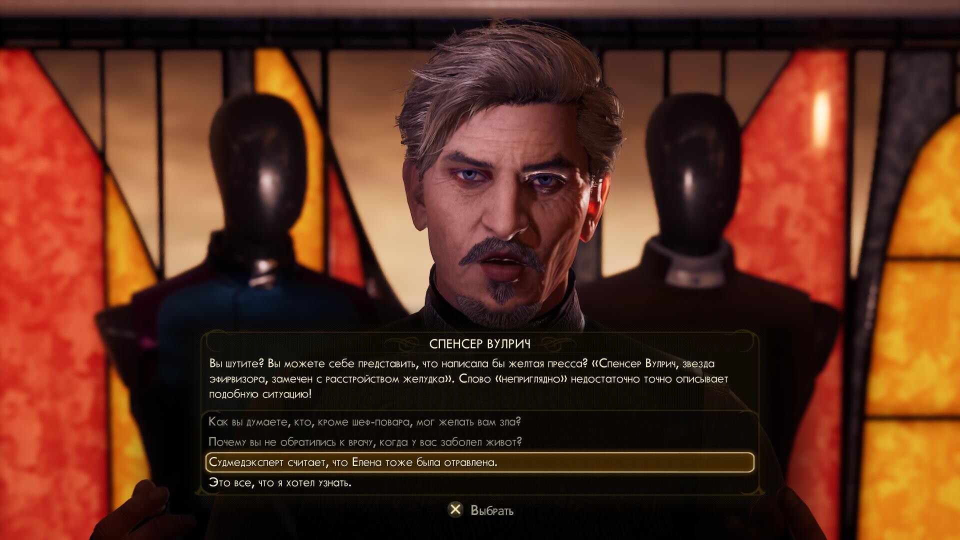 Впрочем, отсутствие оригинальности в сюжете новое DLC компенсирует обилием диалогов и персонажей (среди них в кои-то веки появилась парочка действительно интересных личностей), а вот с выборами и их последствиями всё не так однозначно. Я прошёл дополнение лишь один раз, но помимо финальной главы не заметил никаких предпосылок к ветвлению. Да, некоторые персонажи просят нас не делиться ни с кем своими подозрениями, но за пределы разговоров это не выходит. Не важно, сказали вы нанимателю, что алиби определённого персонажа не идеально или решили умолчать, никаких последствий для героя, кажется, не предусмотрено. Именно поэтому после окончания сюжетной линии не возникает ни малейшего желания попробовать другой подход, хотя авторы упорно рекомендуют так и поступить. Увы, замотивировать игрока на повторный пробег у дизайнеров повествования не вышло.