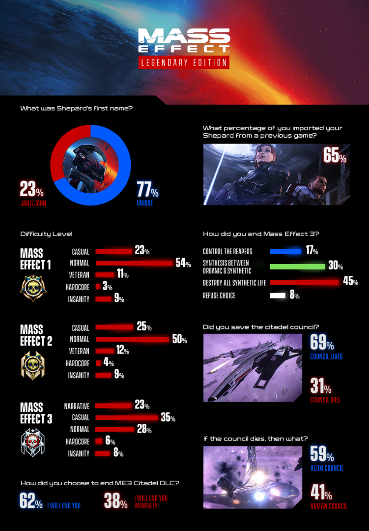 К сожалению, студия не поделилась никакими подробностями Mass Effect 5 даже в опубликованном обращении к фанатам, в котором представители BioWare посетовали на невозможность увидеться с поклонниками лицом к лицу и оставили комментарии относительно опубликованной в честь Дня N7 статистики прохождения оригинальной трилогии. Последняя в этом году получила переиздание, привлекшее к серии свежую аудиторию.
