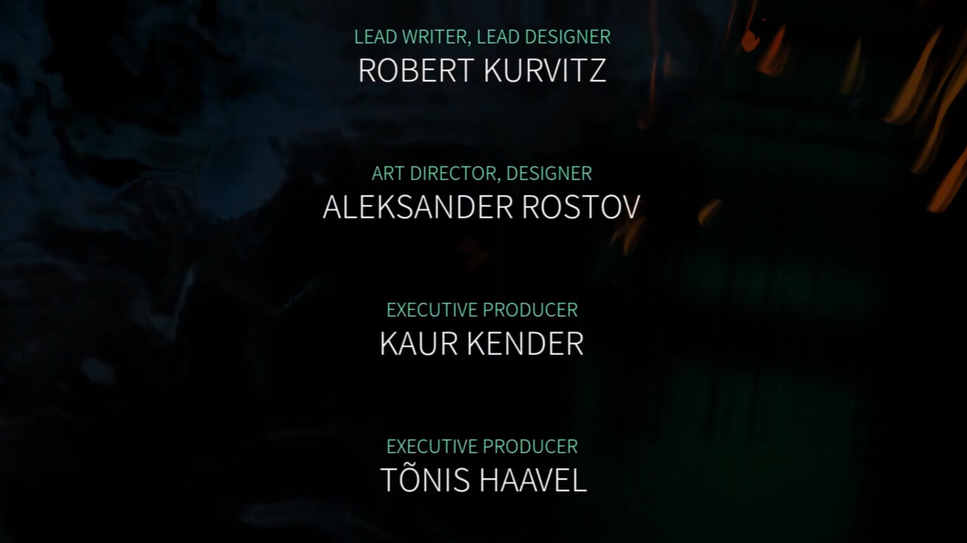 Подводя итог, можно прийти к выводу, что весь визуальный облик игры формировали арт-директор Александр Ростов и концепт-художник Каспар Тамсалу, роль которого в основном сводилась к дизайну локаций.