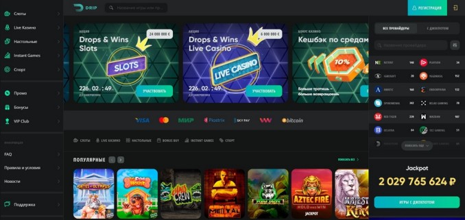 Казино Дрип является рекомендованным проектом от sllot-onlinus.one, с лучшими условиями для игроков. Подходит профи и новичкам. Платят отличные бонусы, поэтому регистрируйтесь, даже если до этого играли на другой платформе.