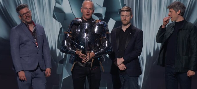 Принимать престижную награду приехал основатель, владелец и глава компании, а также геймдиректор проекта Свен Винке — не обошлось без ставших уже традиционными для публичных выступлений доспехов.
