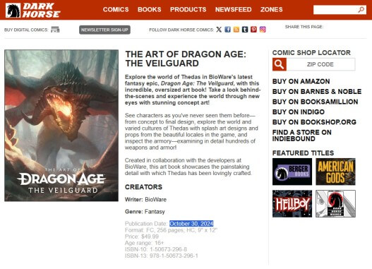 Именно в этот день книга будет доставлена покупателям, а также поступит на полки магазинов. Подобные сопроводительные материалы обычно выходят одновременно с релизом самой игры, поскольку содержат внушительное количество спойлеров, — это означает, что 30 октября является крайним сроком для выхода Dragon Age: The Veilguard.
