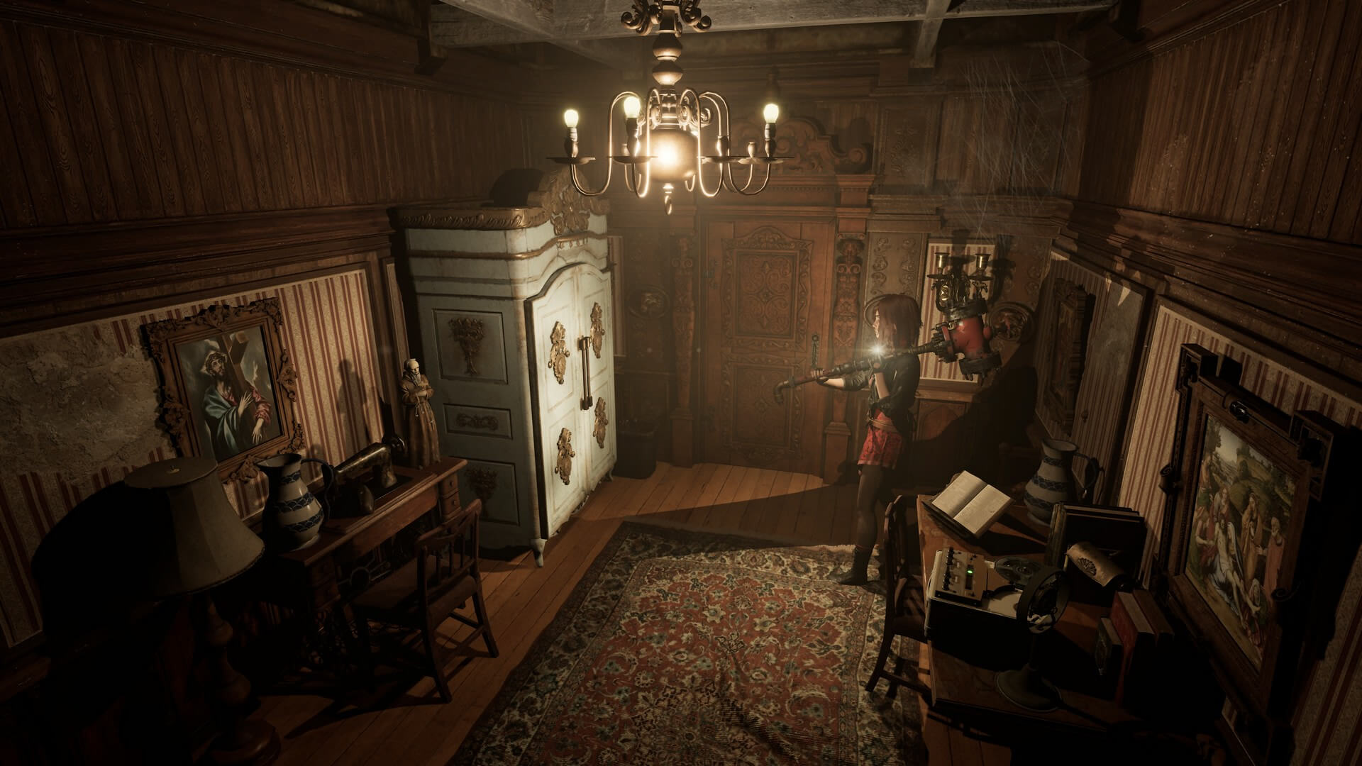 Разработчики добавили механику со светом: в темноте Каролина начинает задыхаться от страха и не может стрелять, только подсвечивать себе зажигалкой. Это создаёт дикое напряжение, когда ты ищешь свечку или рубильник, а из угла на тебя уже надвигается хрустящая конечность. Правда, работает эта механика ровно до тех пор, пока камера не сыграет с тобой злую шутку и ты не наткнёшься на врага, просто пытаясь выйти из комнаты.