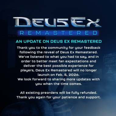 «Спасибо сообществу за отзывы, появившиеся вслед за анонсом Deus Ex Remastered. Мы прислушались к тому, что вы говорили, и приняли решение перенести релиз с 5 февраля 2026 года с целью сделать так, чтобы [ремастер] лучше соответствовал ожиданиям фанатов. Мы с нетерпением ждём возможности поделиться с вами новостями, когда придёт время».