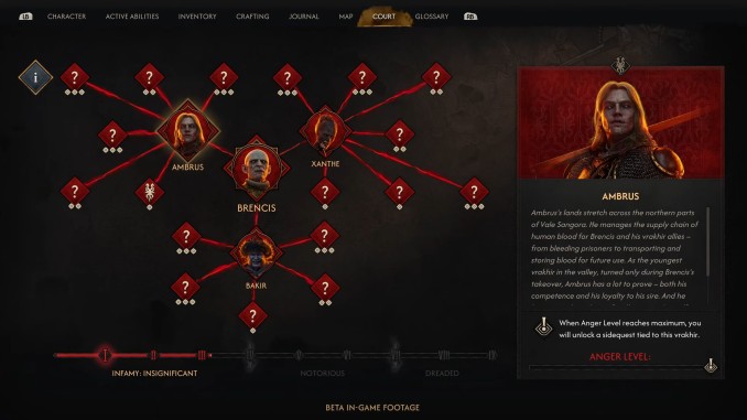 - Показали систему «эдиктов» — это приказы вампира Бренсиса (главный злодей The Blood of Dawnwalker), который усложняет жизнь как протагонисту, так и местным жителям, когда герой нарушает его планы. Среди самых простых эдиктов — введение комендантского часа или дополнительных патрулей.